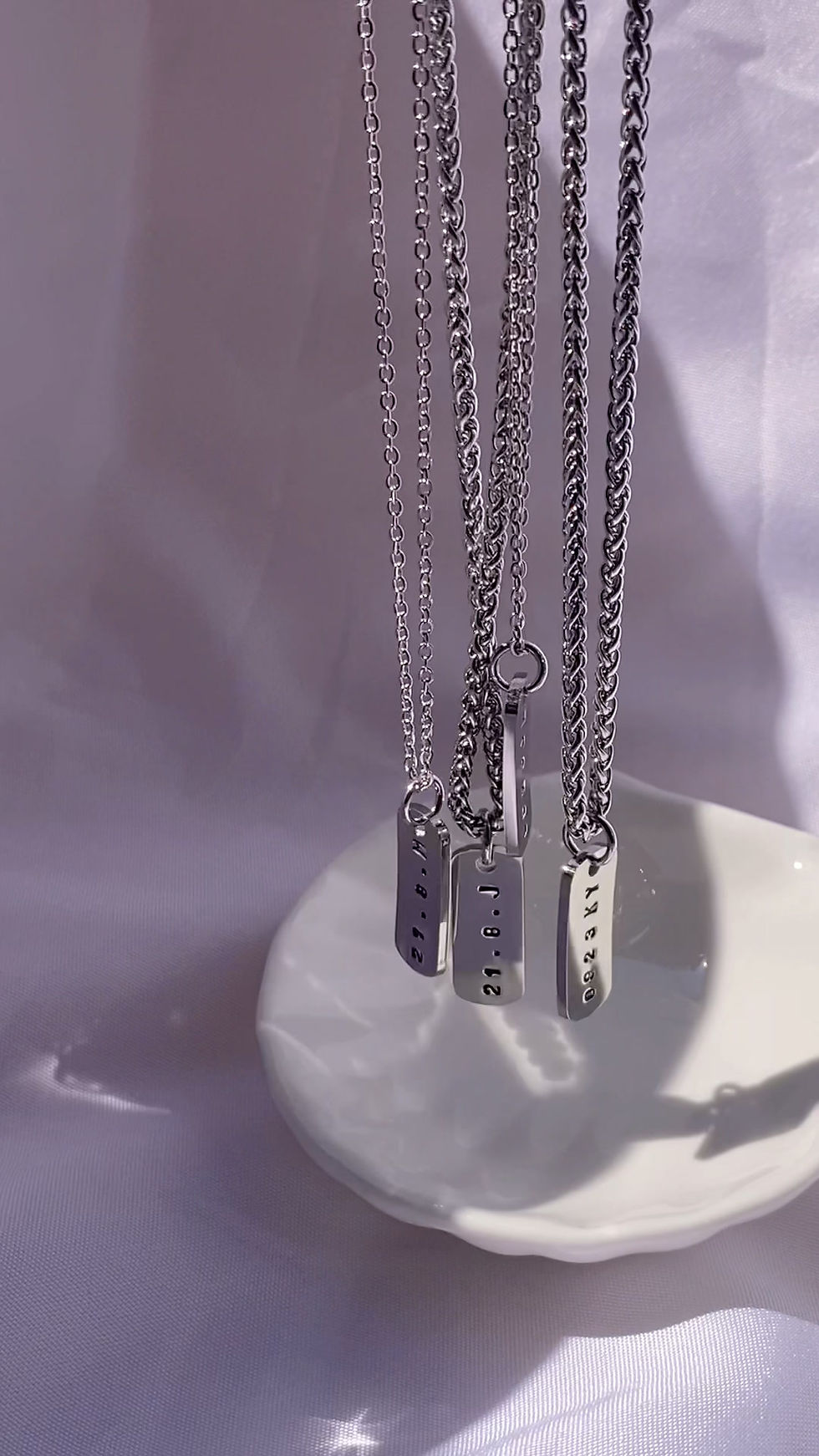 Stainless Steel Curb Chain Couple Necklace + Bar Shaped Handstamped Pendant